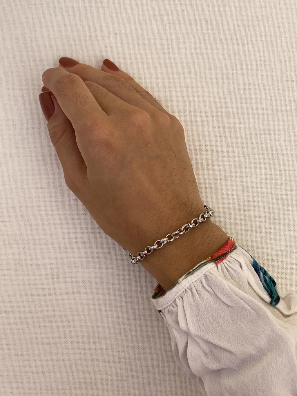 Composta inteiramente em inox 316L, esta pulseira é sinônimo de resistência e durabilidade, garantindo que o brilho permaneça intacto ao longo do tempo.