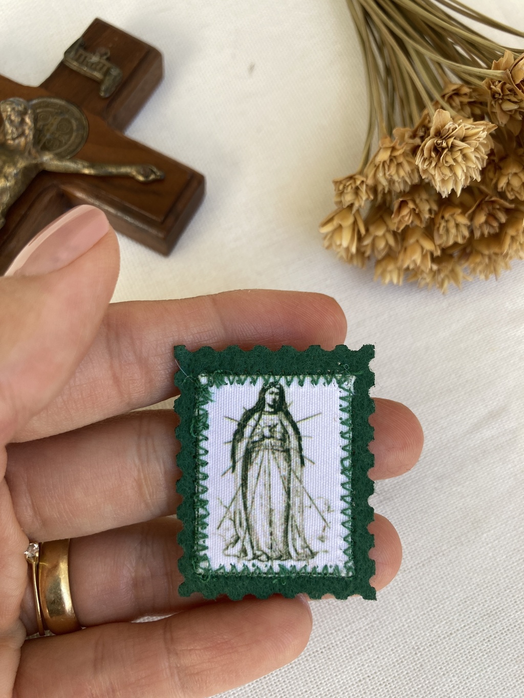 O Escapulário Verde foi dado à irmã Faustina Bisqueyburu, religiosa das Irmãs da Caridade de São Vicente de Paula. No dia 8 de setembro de 1840, a Mãe de Deus lhe apareceu durante a oração: tinha na mão direita um coração em chamas e na esquerda, um pequeno escapulário de tecido verde.